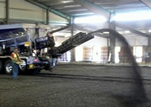 Using Jonez Conveyor’s top-of-the-line conveyor truck reaches even the tightest places! We can place sand, topsoil, rock and barkdust for you, up to 75 feet away . . .